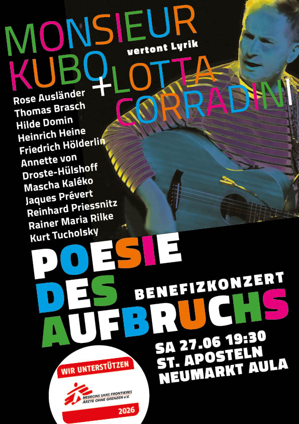 2023 und 2024 gab es schöne Konzerte mit dem Mandelbaum-Programm, und zusammenich mit dem Jazz-Trompeter Bruno Leicht im Duo ein Programm mit Film–, Chanson-, und Jazzklassikern: SONGS OHNE FESTEN WOHNSITZ.