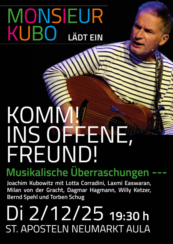 Ich freue mich auf ein besonderes Konzert mitten in Köln Anfang Dezember mit einigen Freunden und musikalischen Weggefährten der letzten Jahre.